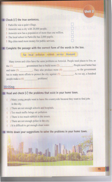 1. Read the questionnaire and talk about the city problems