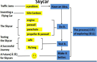 引导学生根据两个问 题进行思考和观点分 享。 1) Do you have some good ideas to improve (改进) the skycars? 2) What else do you want to know about the skycars? |