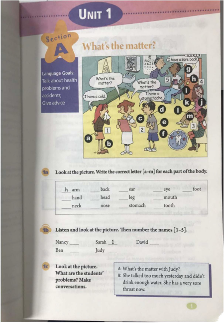 1. Ask students to listen for the first time to get the main topic in each conversation. 2. Ask students to listen again for the detailed causes of health problems. |