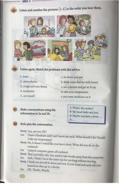 Ask students to listen to the advice on different illnesses. |