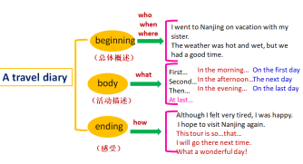 通过阅读引导学生归纳出写旅游日记的流程并构建写作框架,让学生通过阅读关注到写日记的格式,人称和时态,体会叙事的五大要素。展示过程环环相扣,操作性强,能够有效的帮助学生明确按步骤写作的理念。 |