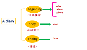According to the passage, lead students to find the key points of writing a diary and summarize the structure of writing. (Ask students to discuss in groups.) |