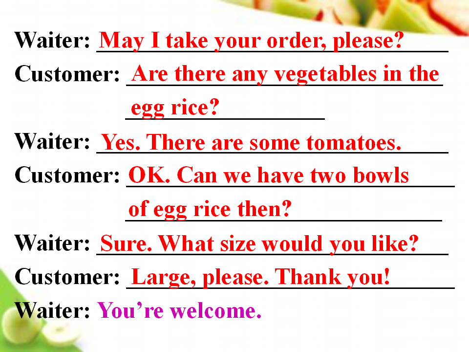 Unit 10 I'd like some noodles. Section B 第2课时 教学课件 七年级下册 版本1 人教版