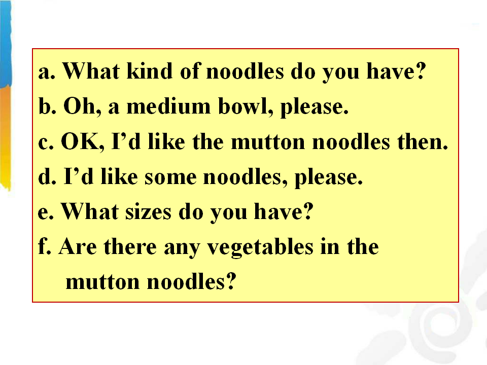 Unit 10 I'd like some noodles. Section A 第2课时 教学课件 七年级下册 版本1 人教版