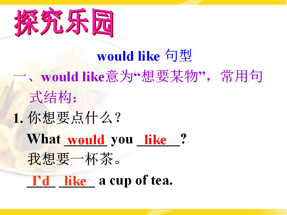 Unit 10 I'd like some noodles. Section A 第1课时 教学课件 七年级下册 版本1 人教版