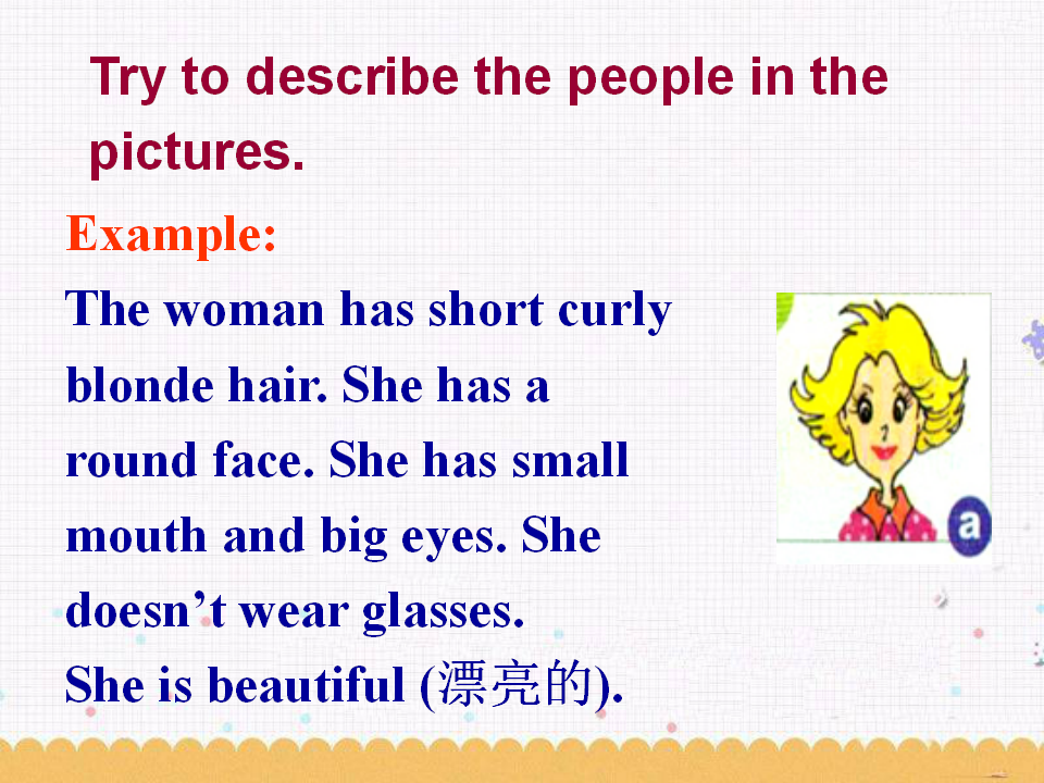 Unit 9 What does he look like? Section A 第2课时 教学课件 七年级下册 版本1 人教版