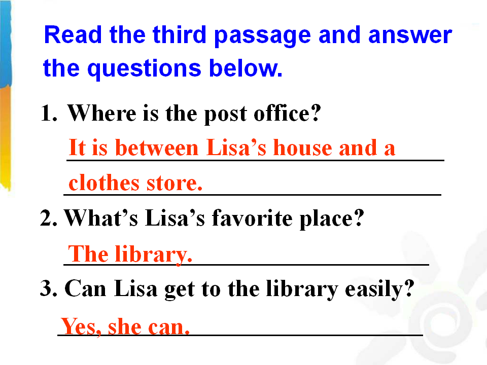 Unit 8 Ts there a post office near here? Section A 第2课时 教学课件 七年级下册 版本1 人教版