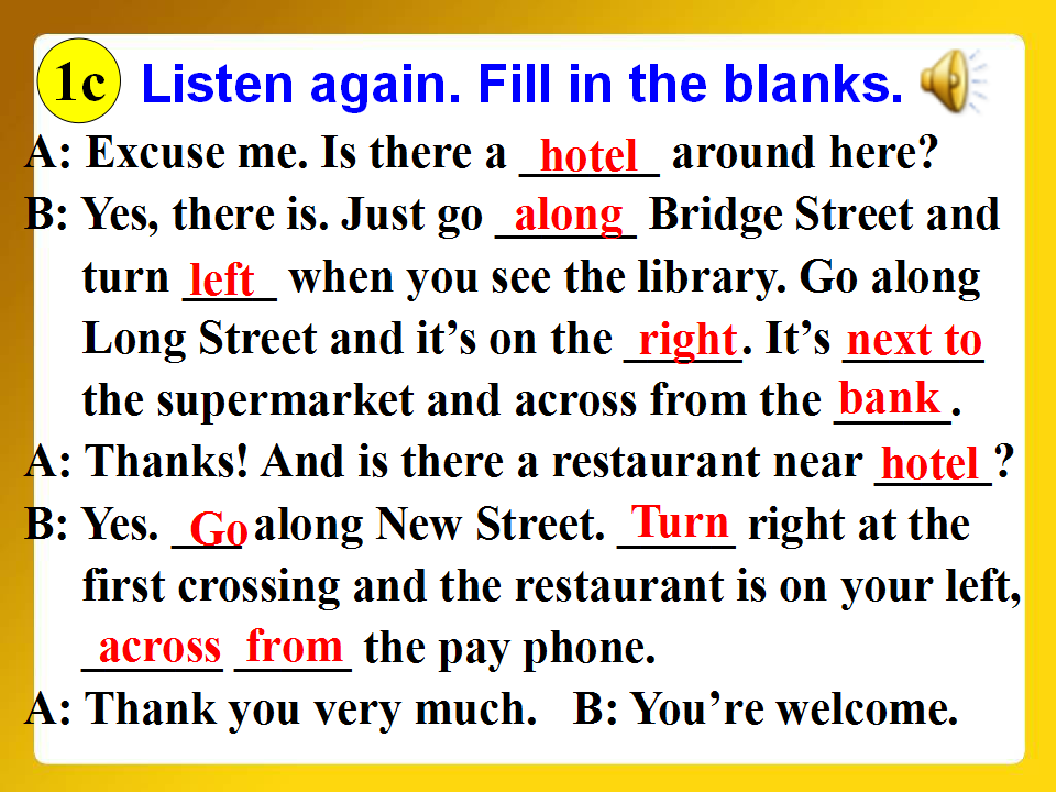 Unit 8 Ts there a post office near here? Section B 第2课时 教学课件 七年级下册 版本1 人教版