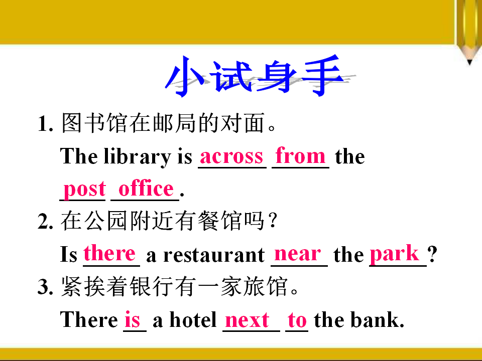 Unit 8 Ts there a post office near here? Section A 第2课时 教学课件 七年级下册 版本1 人教版