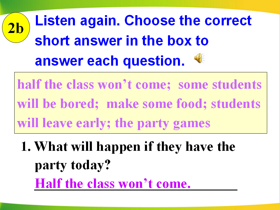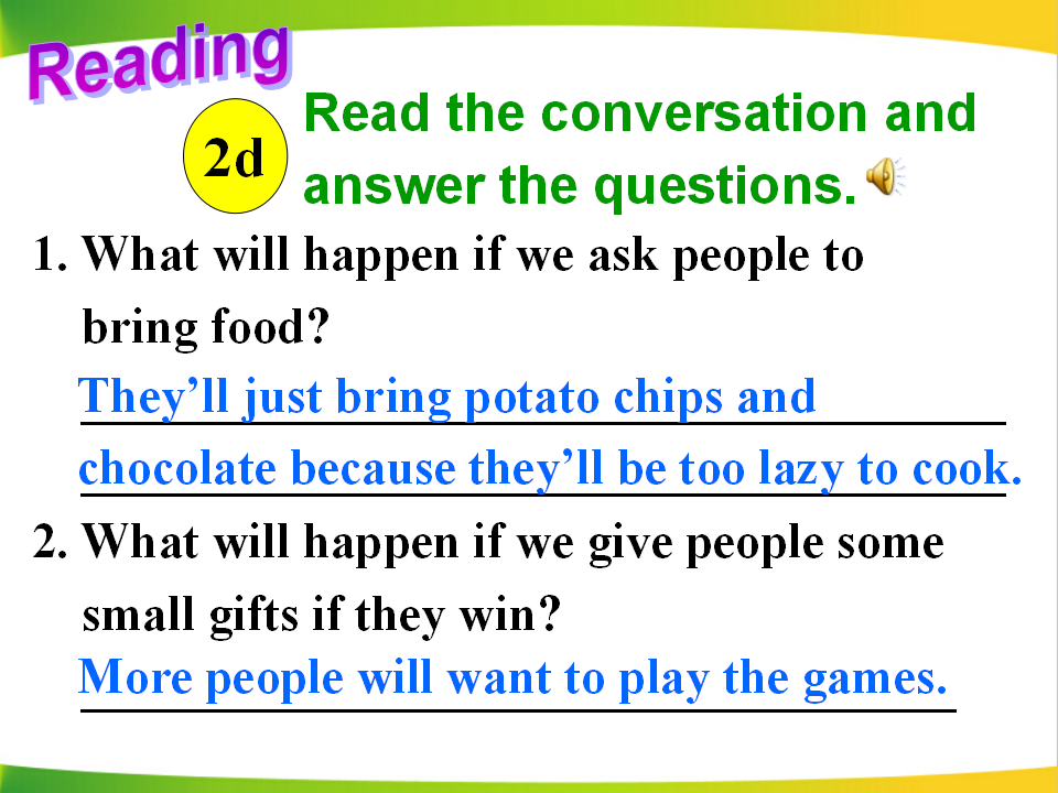 Unit 10 If you go to the party, you'll have a great time Section A 第2课时 教学课件 八年级上册 版本1 人教版
