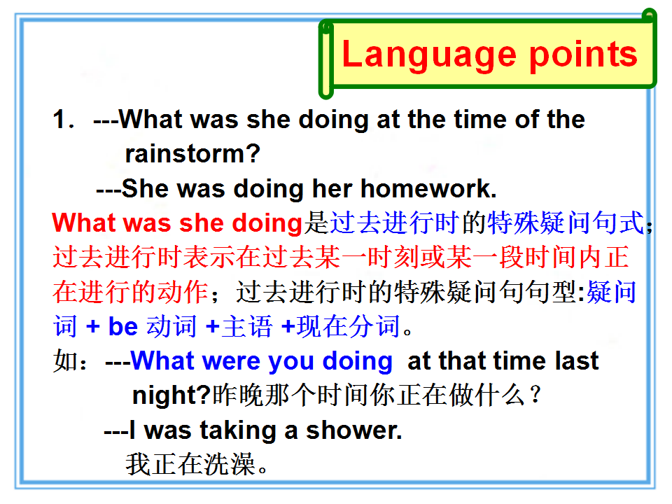 Unit 5 What were you doing when the rainstorm came? Section A 第2课时 教学课件 八年级上册 版本1 人教版