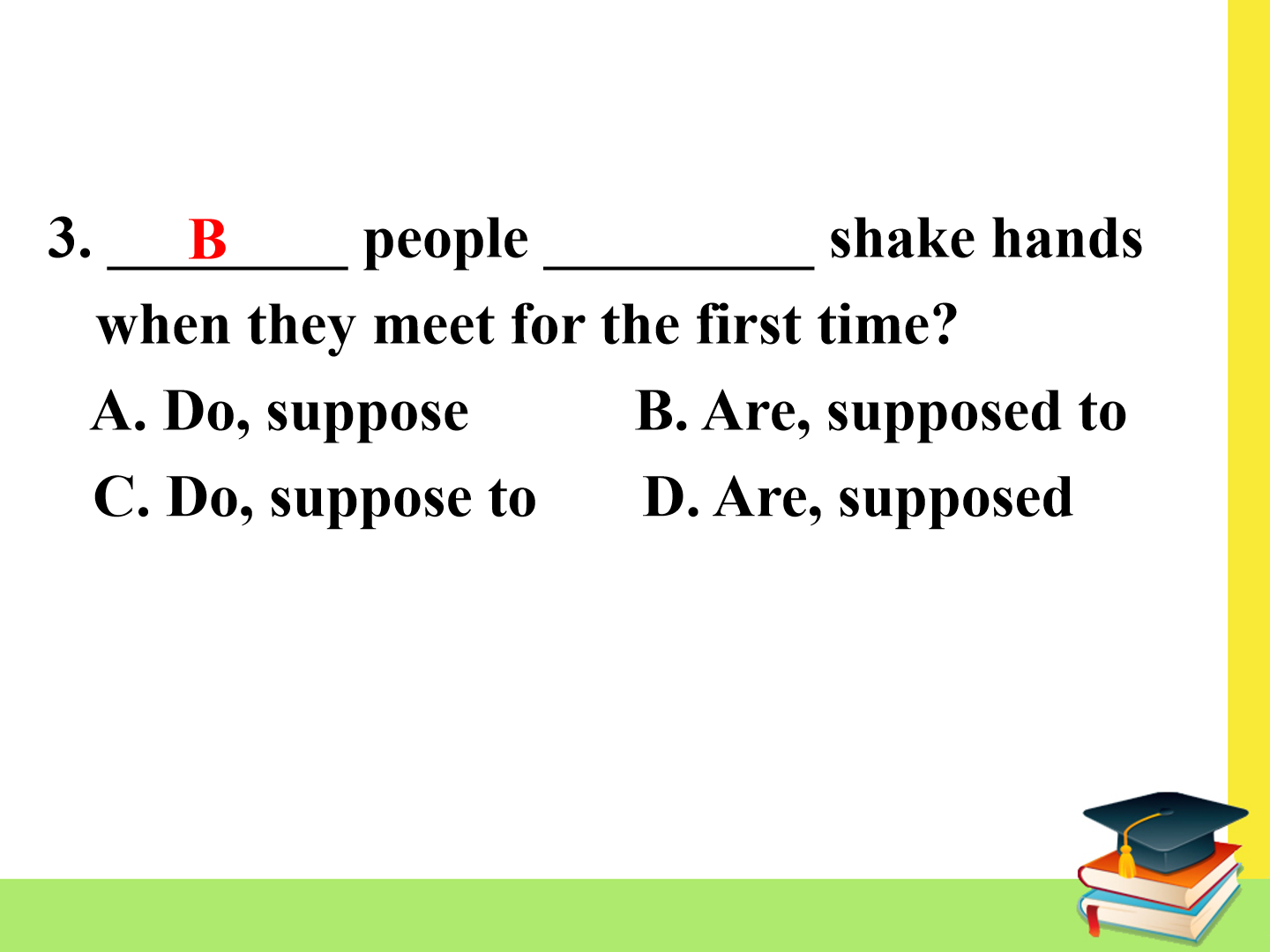 Unit10 You're supposed to shake hands. Section A第三课时教学课件 九年级 版本1人教版