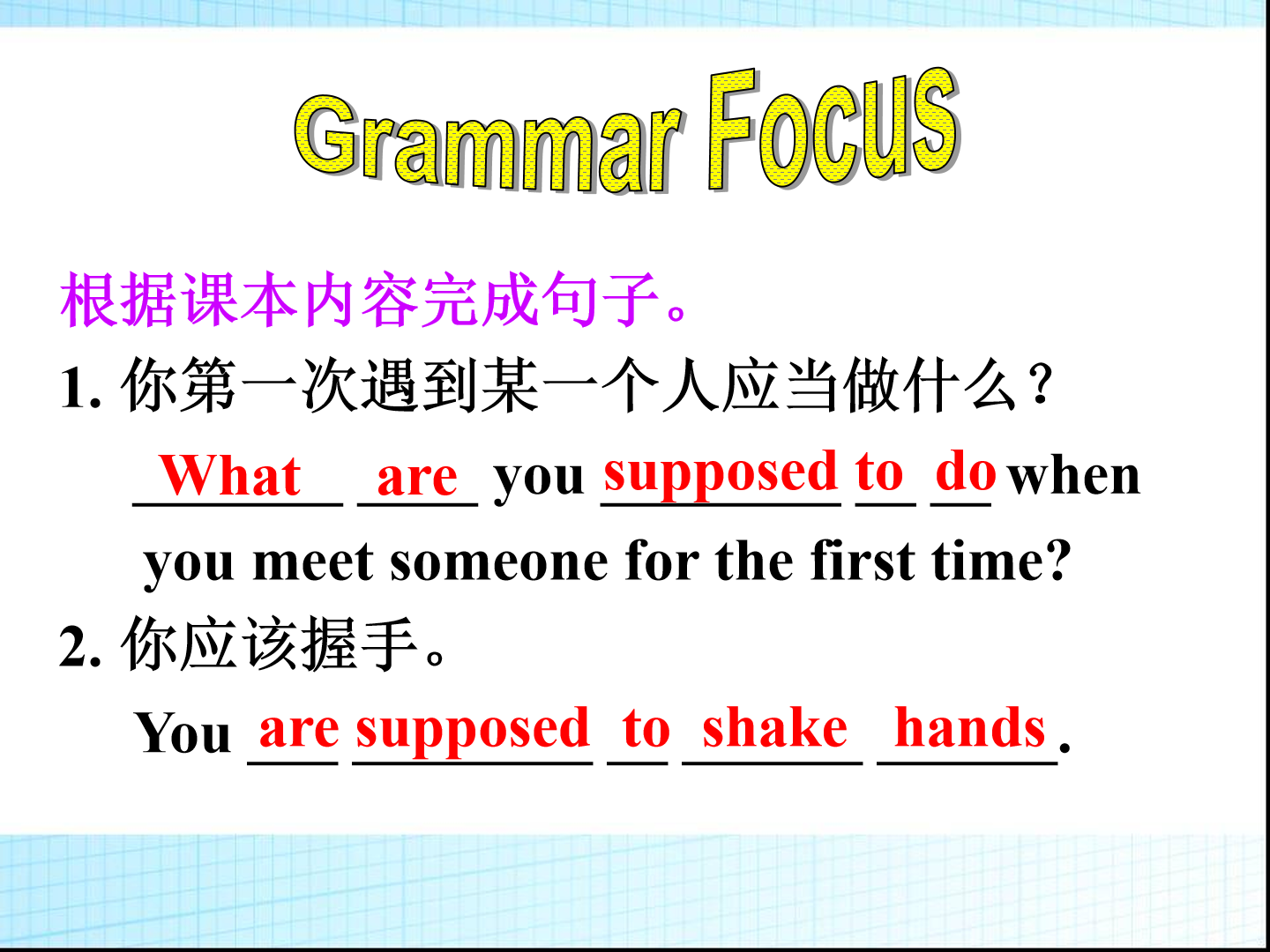 Unit10 You're supposed to shake hands. Section A第一课时教学课件 九年级 版本1人教版