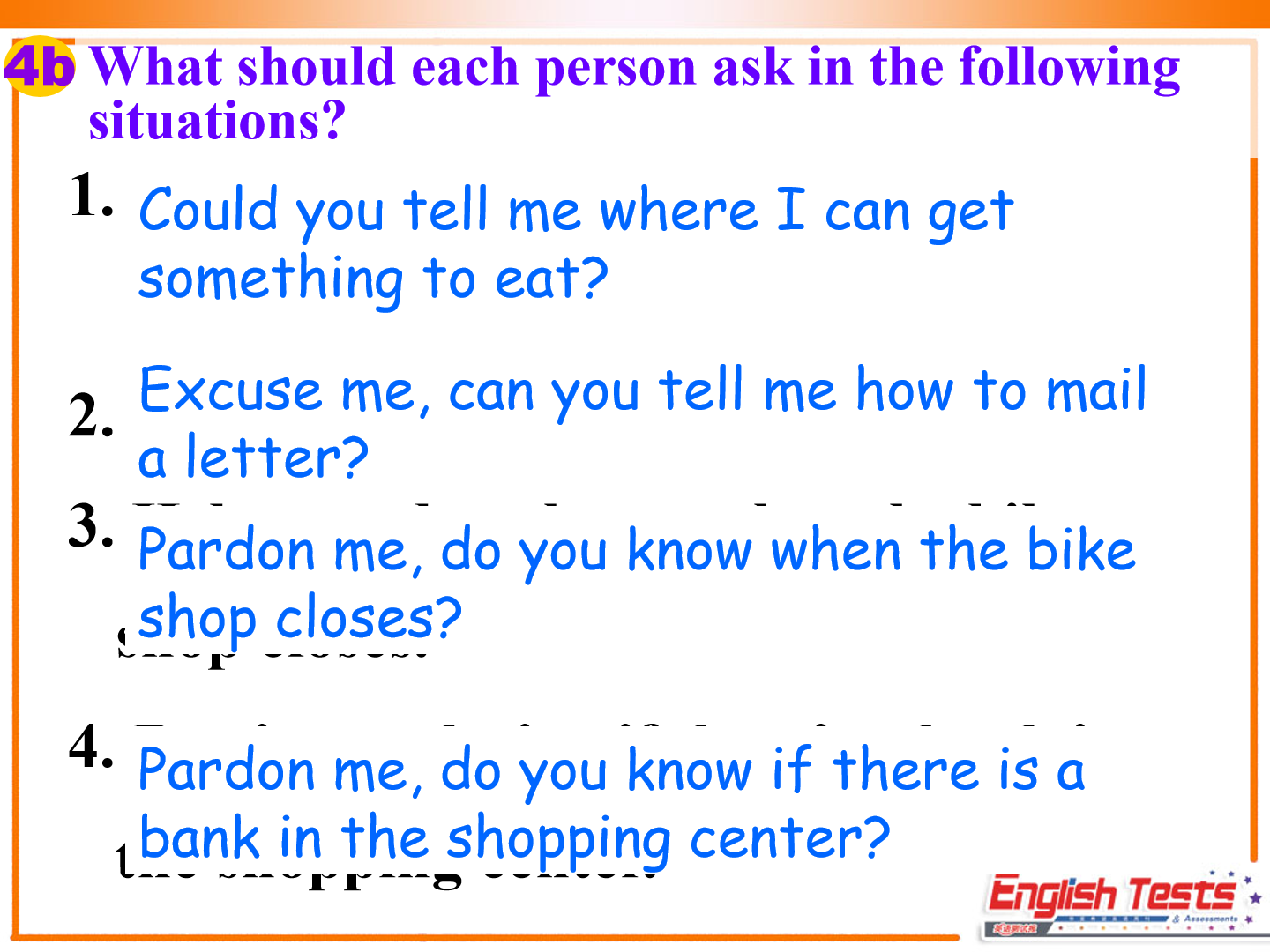 Unit3 Could you please tell me where the restrooms are? Section A第三课时教学课件 九年级 版本1人教版
