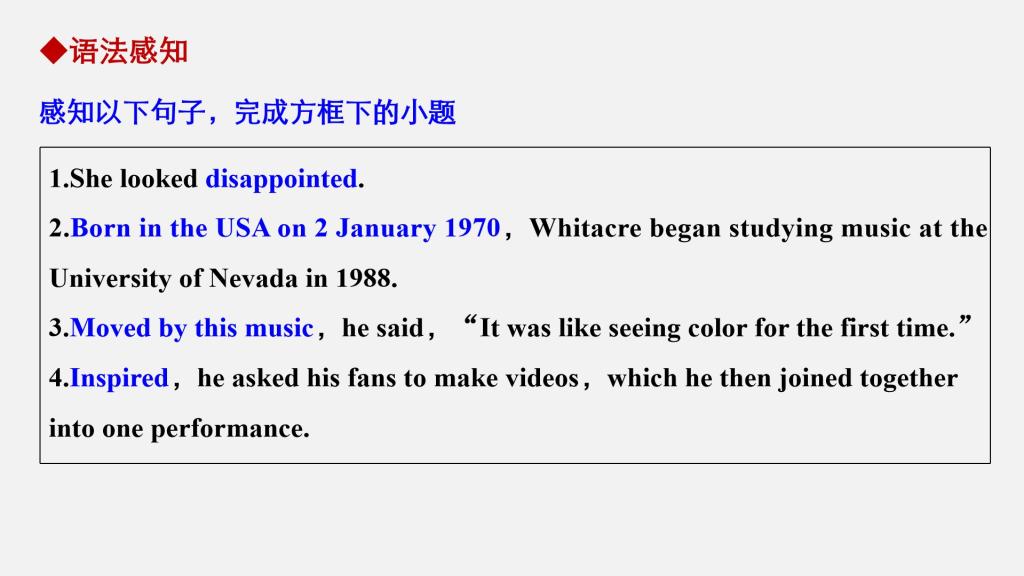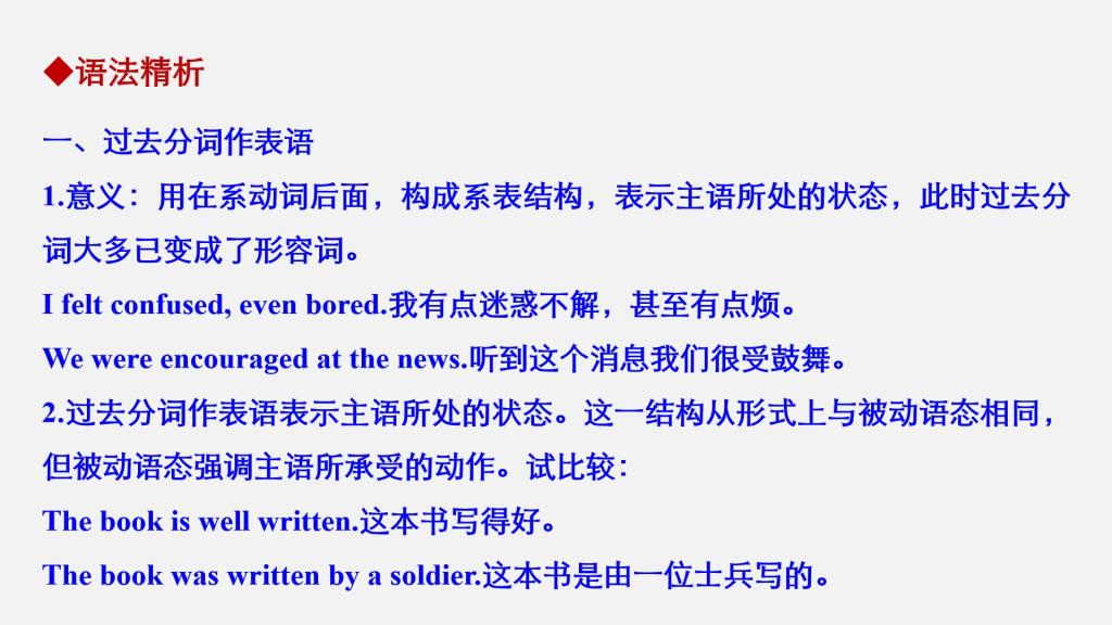 Unit 5 Period Three Discovering Useful Structures—Past participles(2) as the predicative and the adverbial.pptx