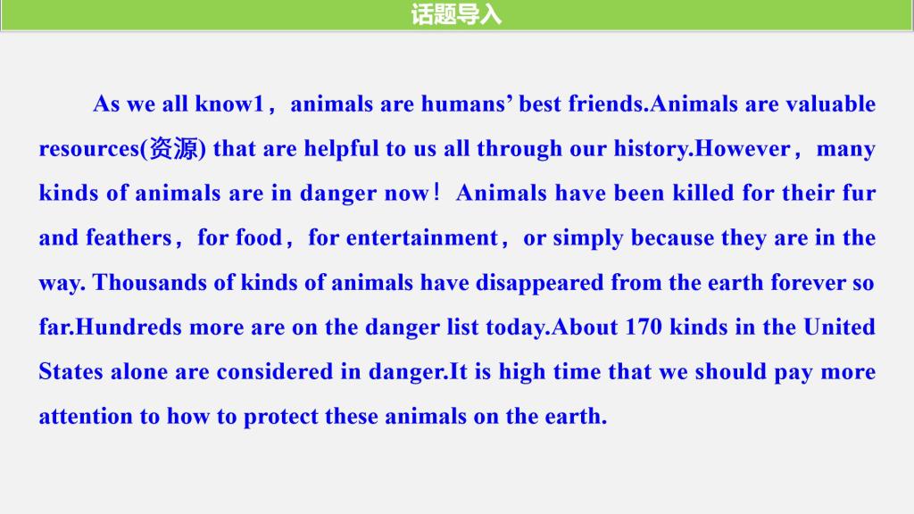 Unit 2 Wildlife Protection 第一课时教学课件 高中英语第二册必修 版本1 人教版