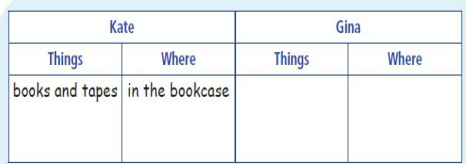 Read the passage again and complete the chart about the things Kate and Gina have and where they are. Work in groups of four students.
