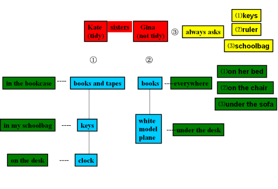 T: Well done. We all like tidy rooms. Is Kate and Gina tidy? Let’s see their room together.