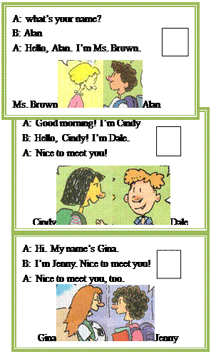 Like: Good morning! My name’s…Her name’s…His name’s…and he’s…