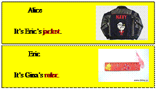 Alice is your English name. You must give this jacket to Eric. When you find the person on your card, you can use the following sentences: