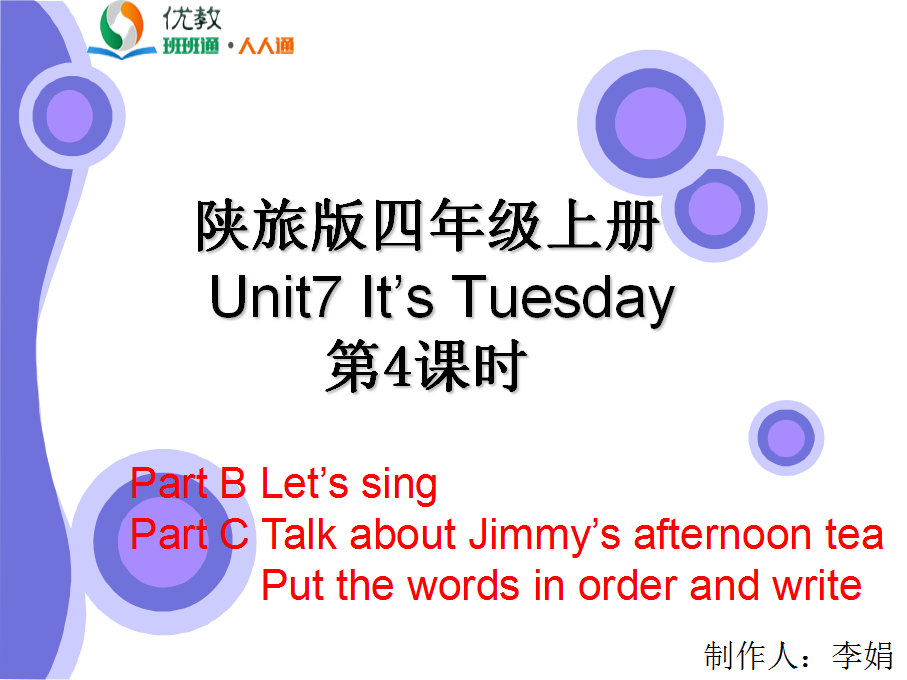 Unit7 It’s Tuesday 第四课时教学课件 四年级上册 版本1 陕旅版