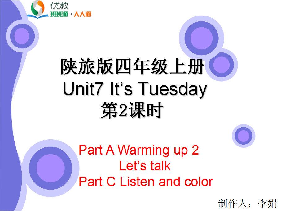 Unit7 It’s Tuesday 第一课时教学课件 四年级上册 版本1 陕旅版
