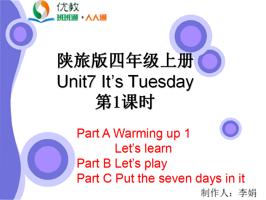 Unit7 It’s Tuesday 第一课时教学课件 四年级上册 版本1 陕旅版