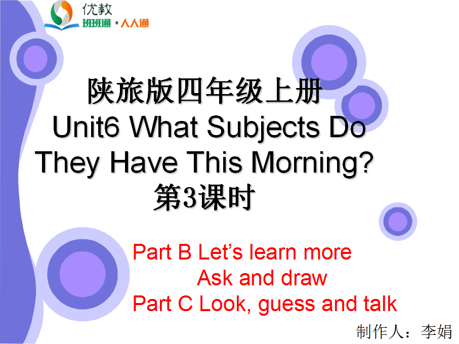 Unit6 What Subjects Do They Have This Morning? 第三课时教学课件 四年级上册 版本1 陕旅版