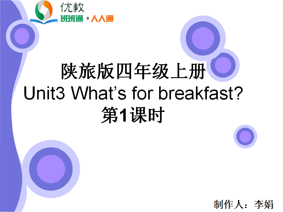 Unit3 What's for breakfast?第一课时教学课件 四年级上册 版本1 陕旅版