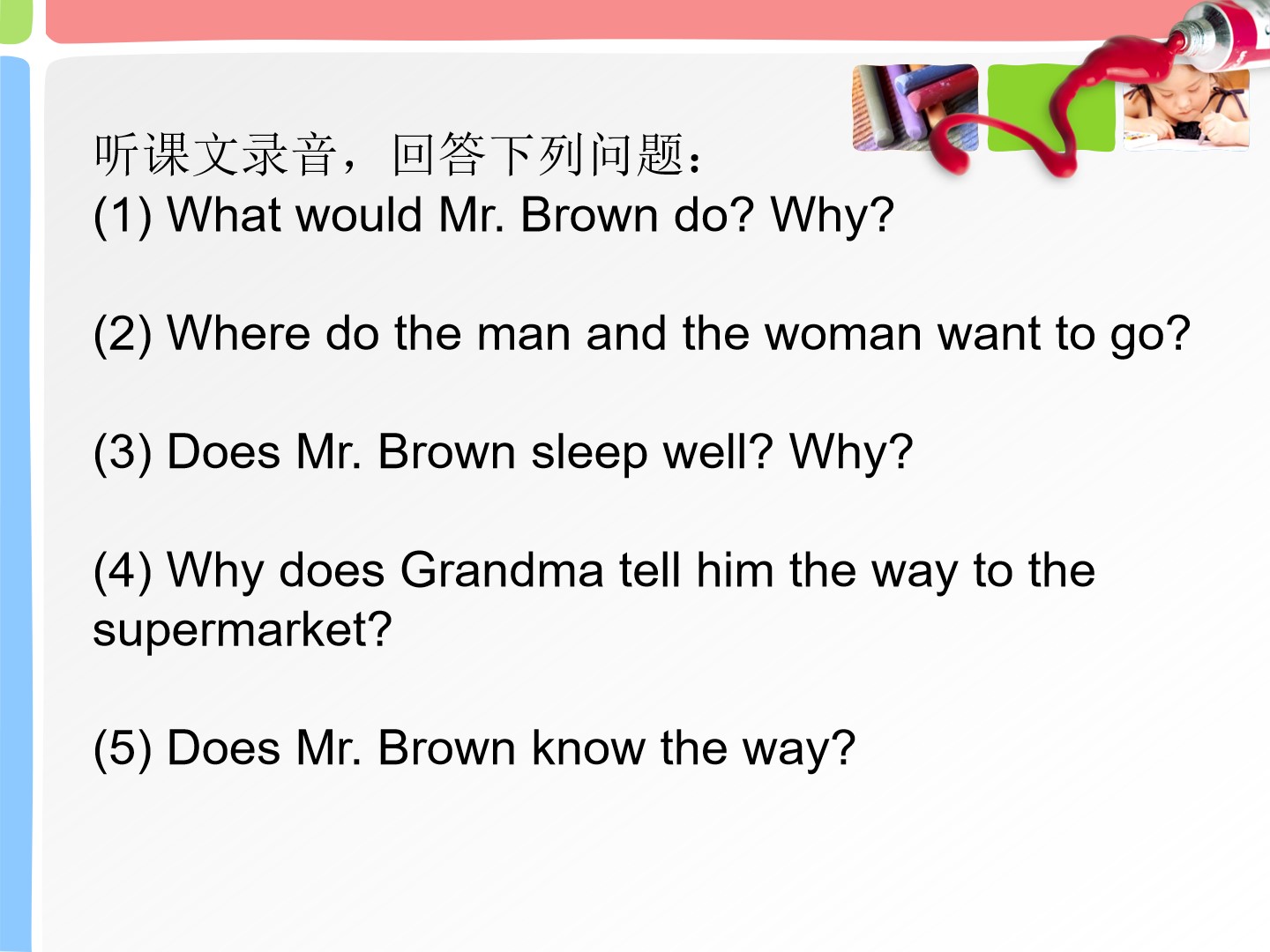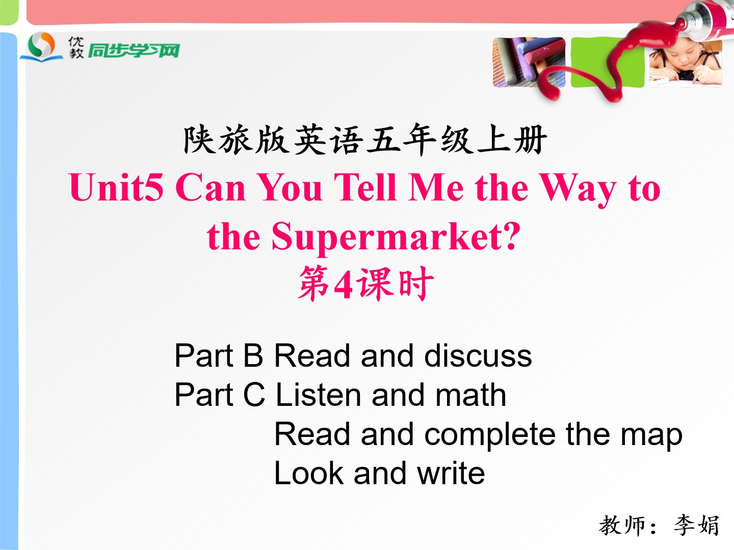 Unit5 Can you tell me the way to the supermarket?第四课时教学课件 五年级上册 版本1 陕旅版
