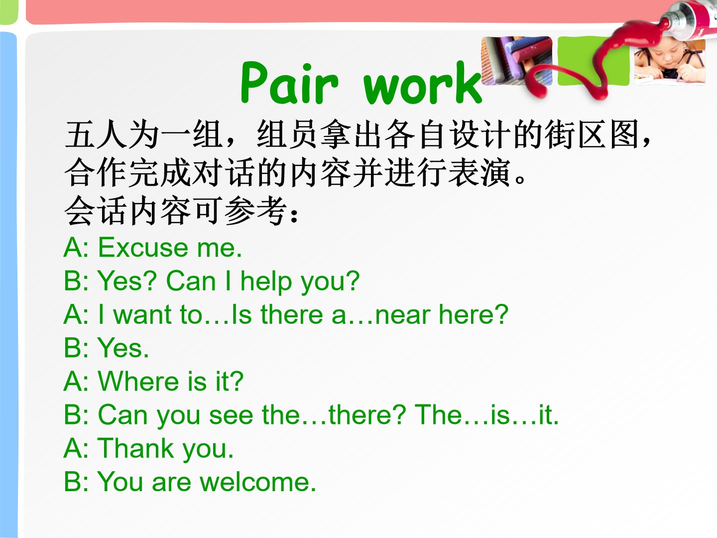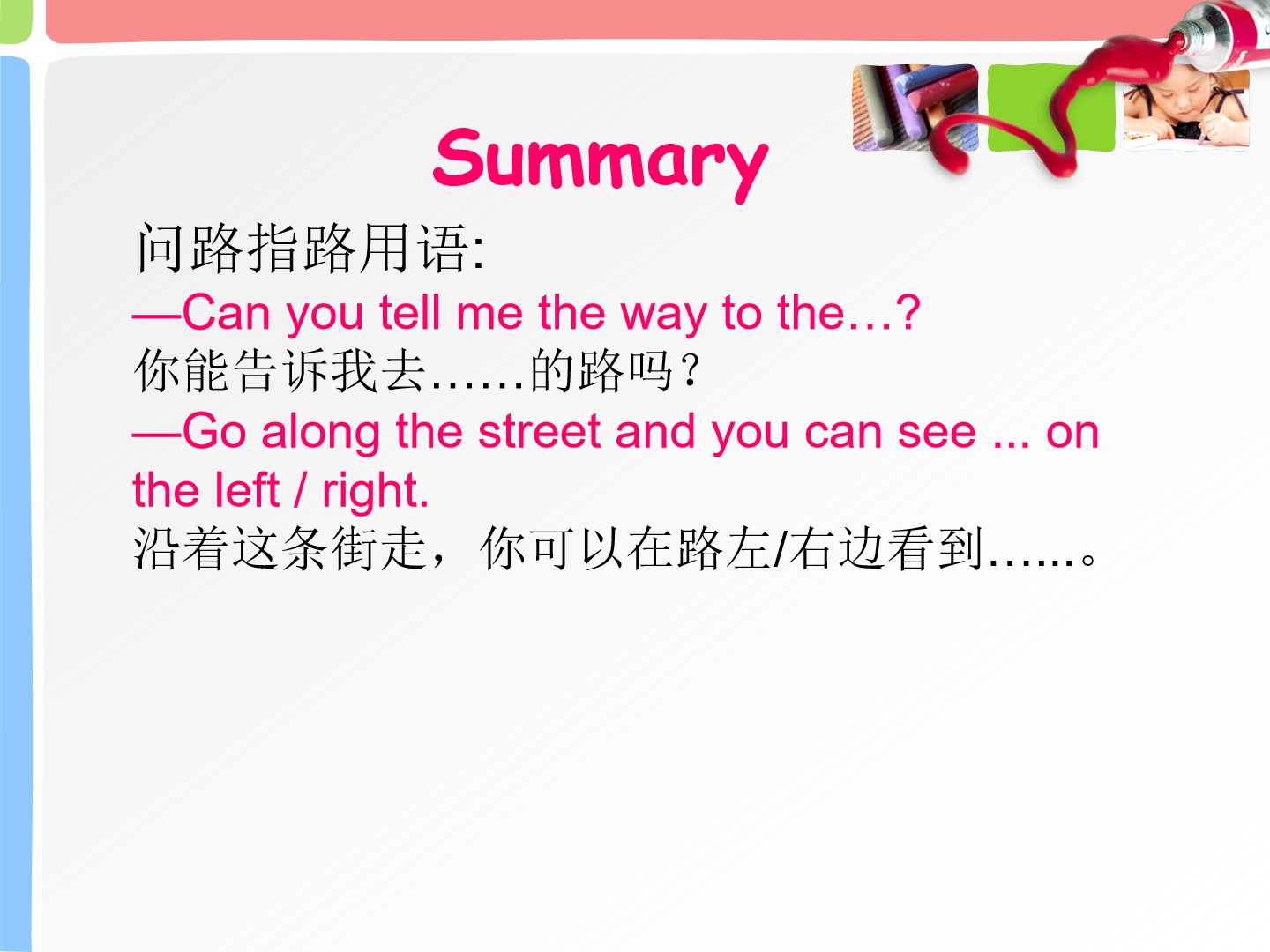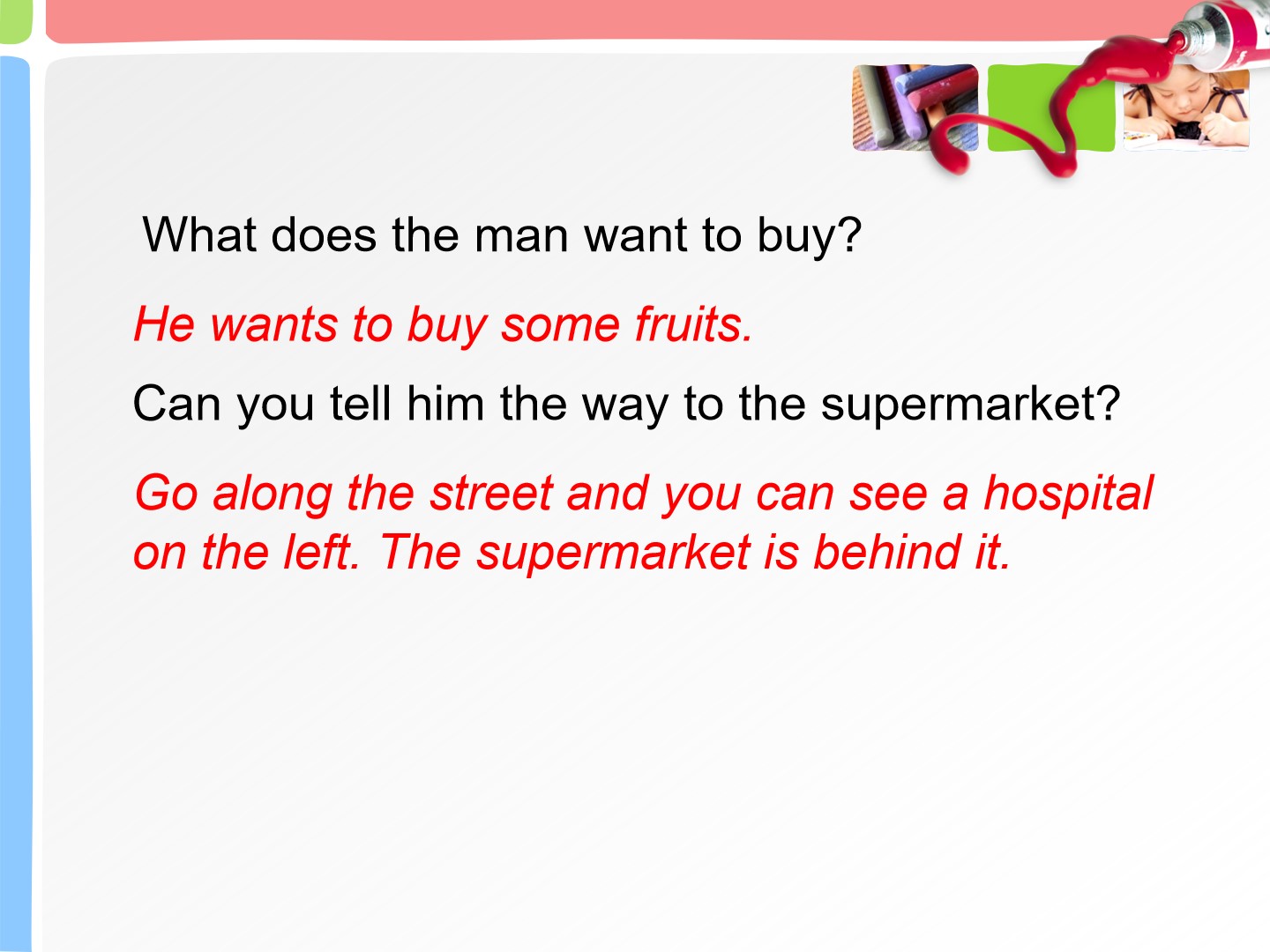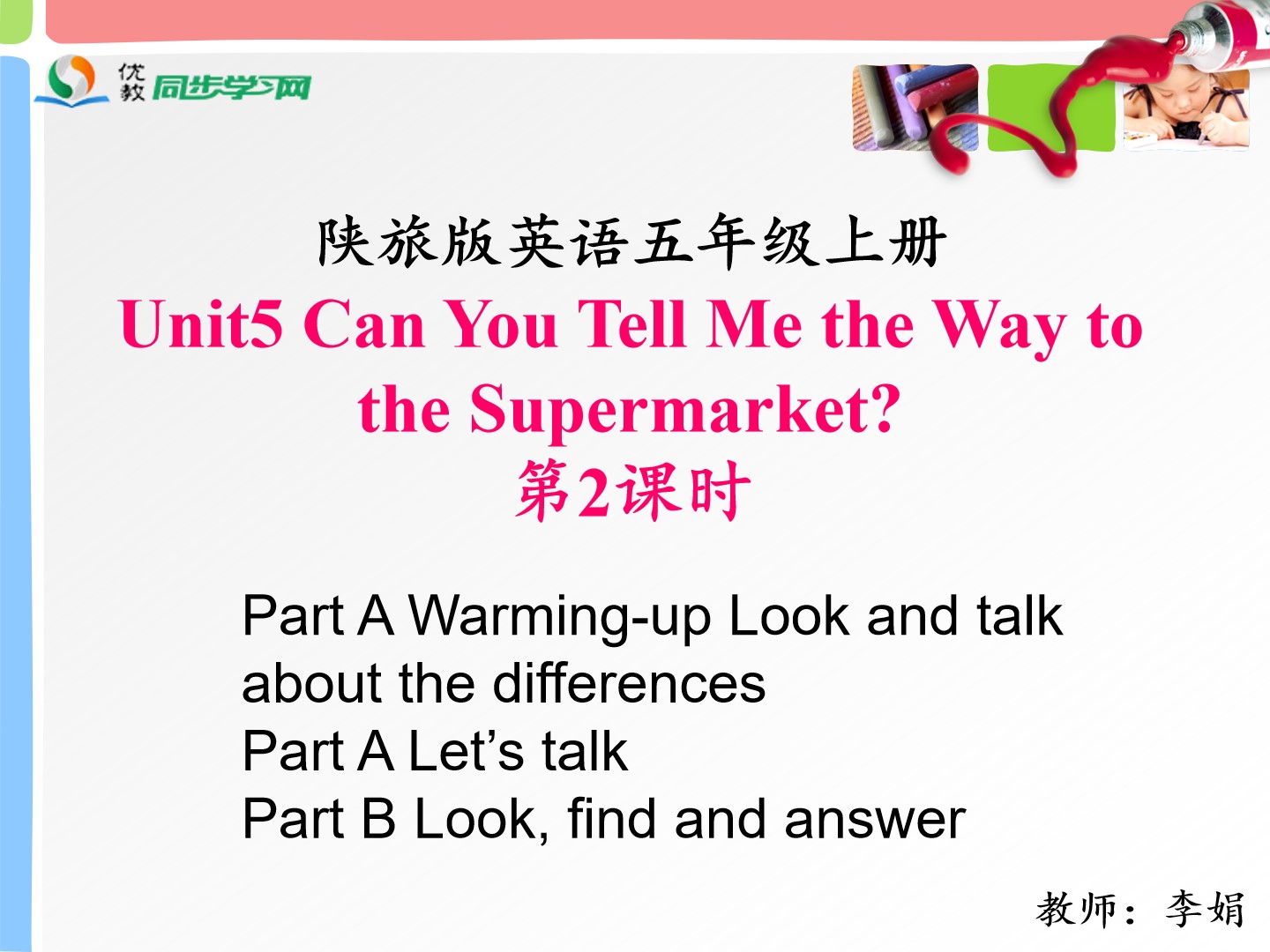 Unit5 Can you tell me the way to the supermarket? 第二课时教学课件 五年级上册 版本1 陕旅版