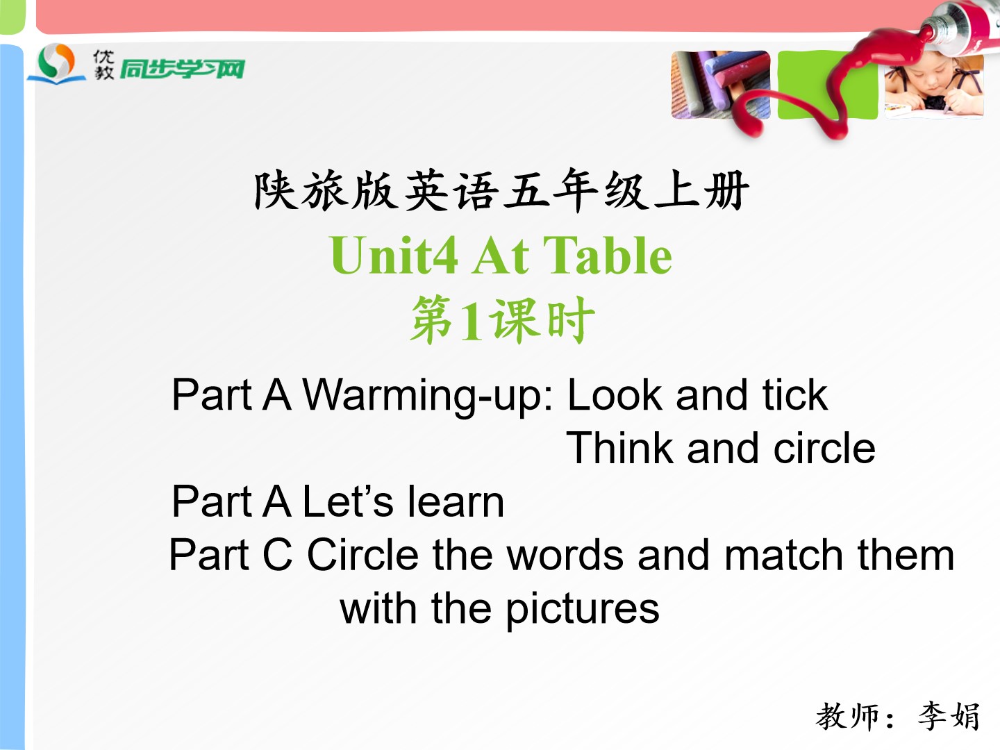 Unit4 At Table 第一课时教学课件 五年级上册 版本1 陕旅版