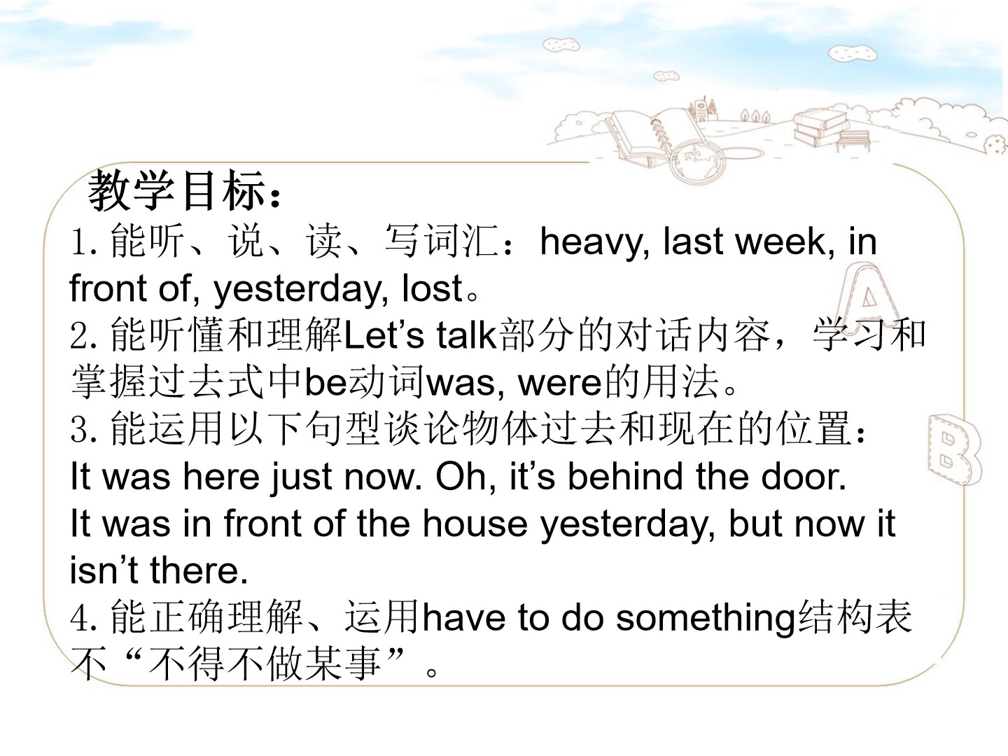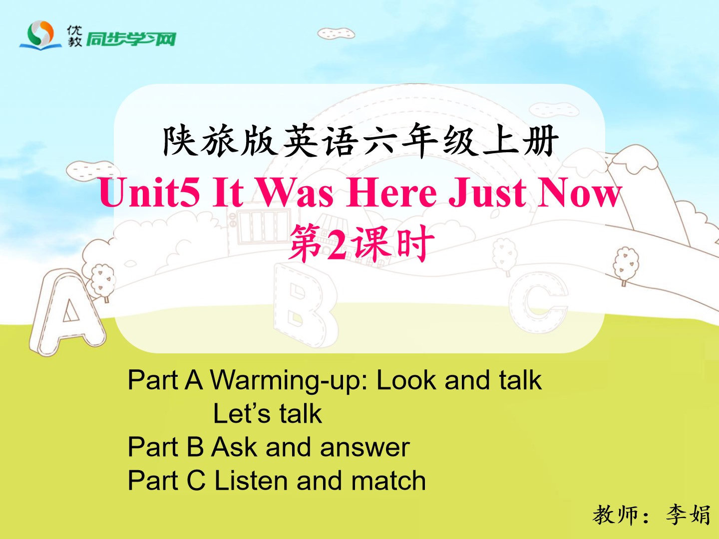 Unit5 It was here just now.第一课时教学课件 六年级上册 版本1 陕旅版
