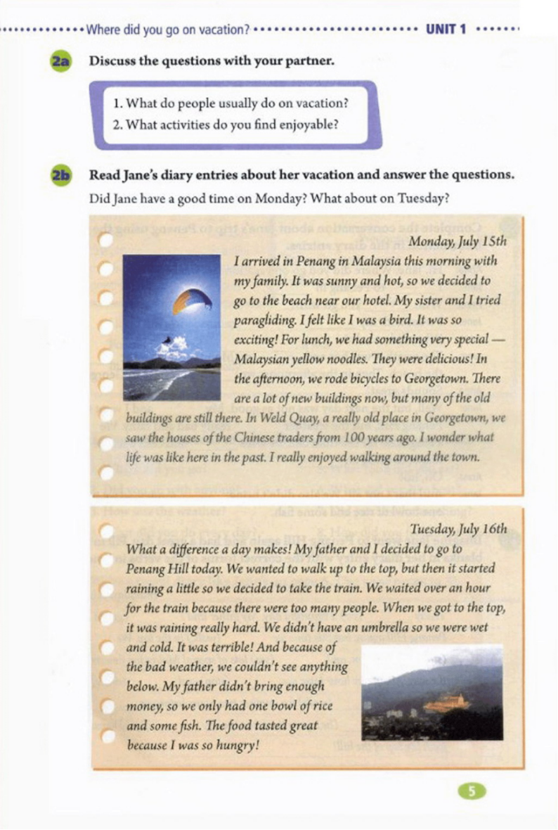 Give a scene Suppose you are Jane, you want to share your vacation with your classmate, how do you talk about it? |