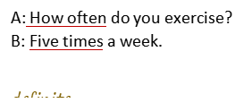 6. Provides students with a vertical axis from 0% to 100%. 7. Invites students think about that how can we remember these seven words easily. Teacher gives a example firstly: the term, always, has two same letters with word “all”, so we can say that if someone do something all the time, he/she must always do it. 8. Poses a question: how to make questions by use these adverbs? 9. Asks what’s the between “ How often do you exercise?” and “ What do you often do?” |