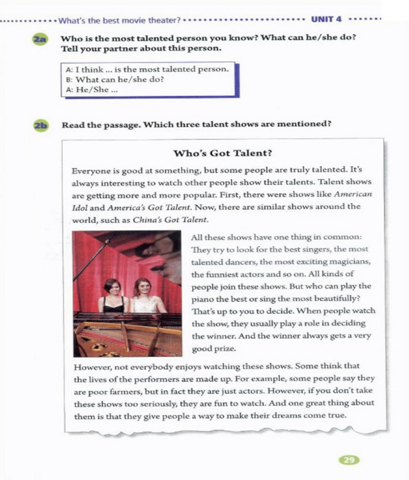 2. Teacher presents some pictures about talent shows.
