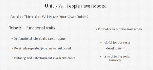 2. Guide Ss to think about the deep implication of the human-like robots and lead Ss to share their own ideas.