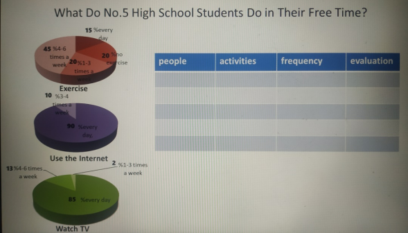 These help Ss to have a detailed understanding of the passage. Qs: Do students at No.5 like to exercise? What do most students use Internet for? What do students usually watch? |
