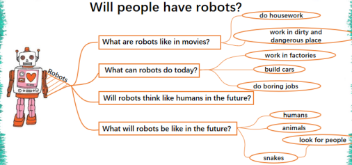 Ss are interested in robots and have lots of imformation about robots,but Ss don’t have further thought about it. How to design teaching procedures to elicit Ss to improve their imagine and critical ability is the point that I need to think about.