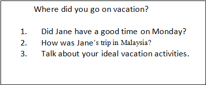 2. Introduce Jane’s vacation in their own words.