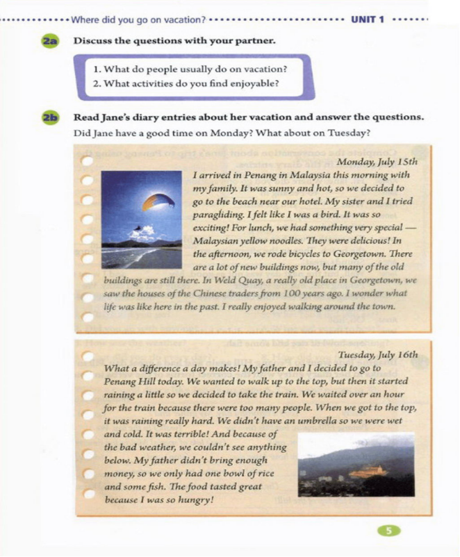 1. tell Ss read the conversation about Jane’s trip to Penang again and use the information in the dairy entries.
