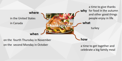 1.Express thanks to others. 2.Read the whole article and think deeply about the similar Chinese festival with Thanksgiving. 3.Read and find the details. 4.Fill out a mind map about Mid-Autumn Festival for group discussion and present it orally. |