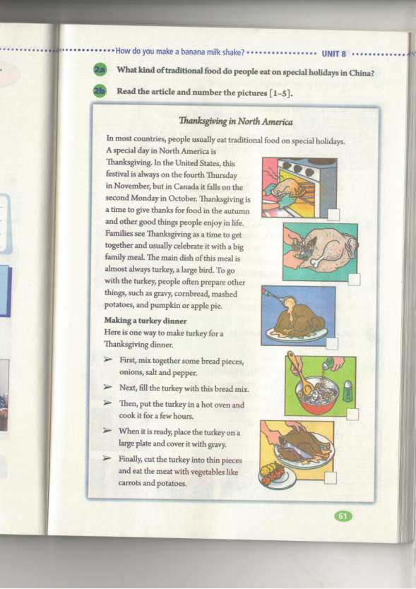 1. Encourage the Ss to learn to thank others. 2.Get the Ss to read the whole article again and think of a Chinese festival which is similar to Thanksgiving. 3.Ask about the reason and let the students find out the detailed information. 4.Complete a mind map about Mid-Autumn Festival |